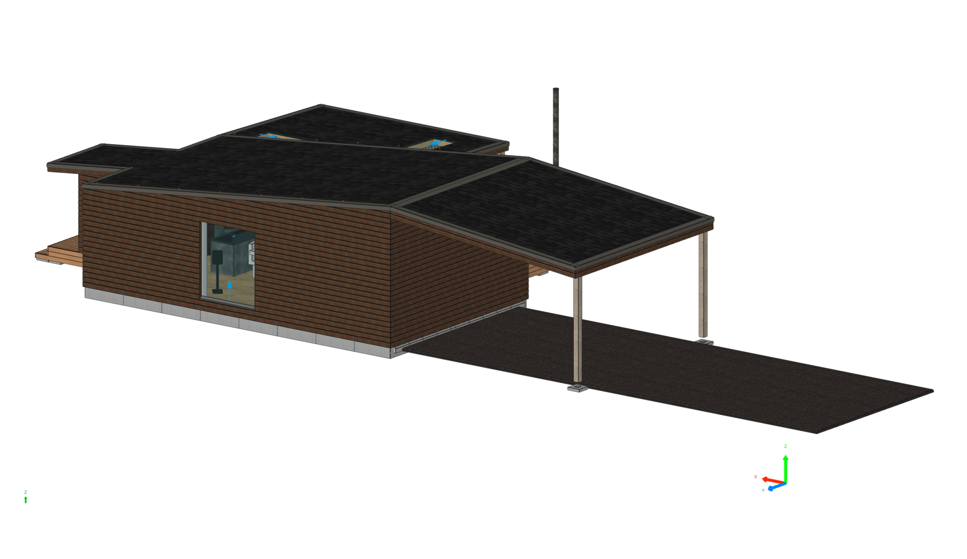 Moodulitest ühepere elamu, elamispind 96,7m2 (+ lastetubades 8,4m2 1,5 korruse peal avatud vahelaed); 5 tuba, vannituba, saun, dušširuum, wc ja esik/garderoob, terrass 48m2, katusealused kahele sõidukile. Sisaldab hoonesisese sauna furnituuri, dušši, vanni, eritellimusköögisaart, disain rippkaminat, küttesüsteemi. Vundamendi ettevalmistust, transporti, paigaldust, siseviimistlust.