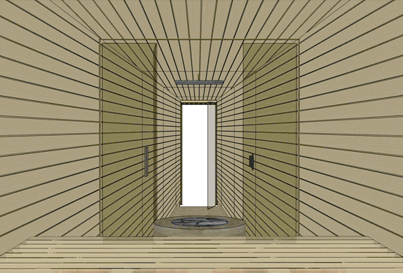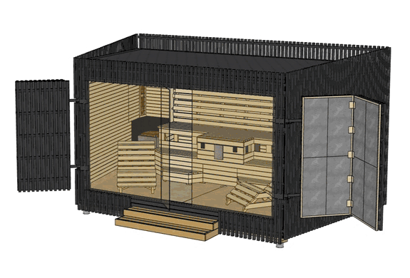 Ønsket om å slappe av, få påfyll av energi og slappe av oftere har fått oss til å følge de nyeste trendene i badstueverdenen. Resultatet er denne lille, lette, terrasserte badstuen. Ikke la deg skremme av størrelsen, vår er ganske kapabel og kan plasseres hvor du vil. Tenk mest på hva forskjellige temperaturer og vanntilstander kan skape, tilsett saltioner og, la oss si «egyptisk» aromaessens ... Denne opplevelsen kan flyte deg til de fjerneste steder i sinnet og bringe deg inn i et øyeblikk, et øyeblikk av åndelig tilfredsstillelse, du er til stede. Dette er for full avslapping av kropp og sinn, etter litt uro frigjør glede, glede og etter lykkeeffekten som varer i timevis, noe som også skaper forskjellige sinnstilstander og beriker tankeutvekslingene dine. Alt dette er til syvende og sist gunstig for ditt generelle velvære og vitalitet. Det er velkjent at badstueritualet er det beste alternativet til lett kondisjonstrening. Klikk på videoen for å utforske 3d-modellen selv, og for bedre audiovisuell nytelse, sjekk vår Youtube-kanal